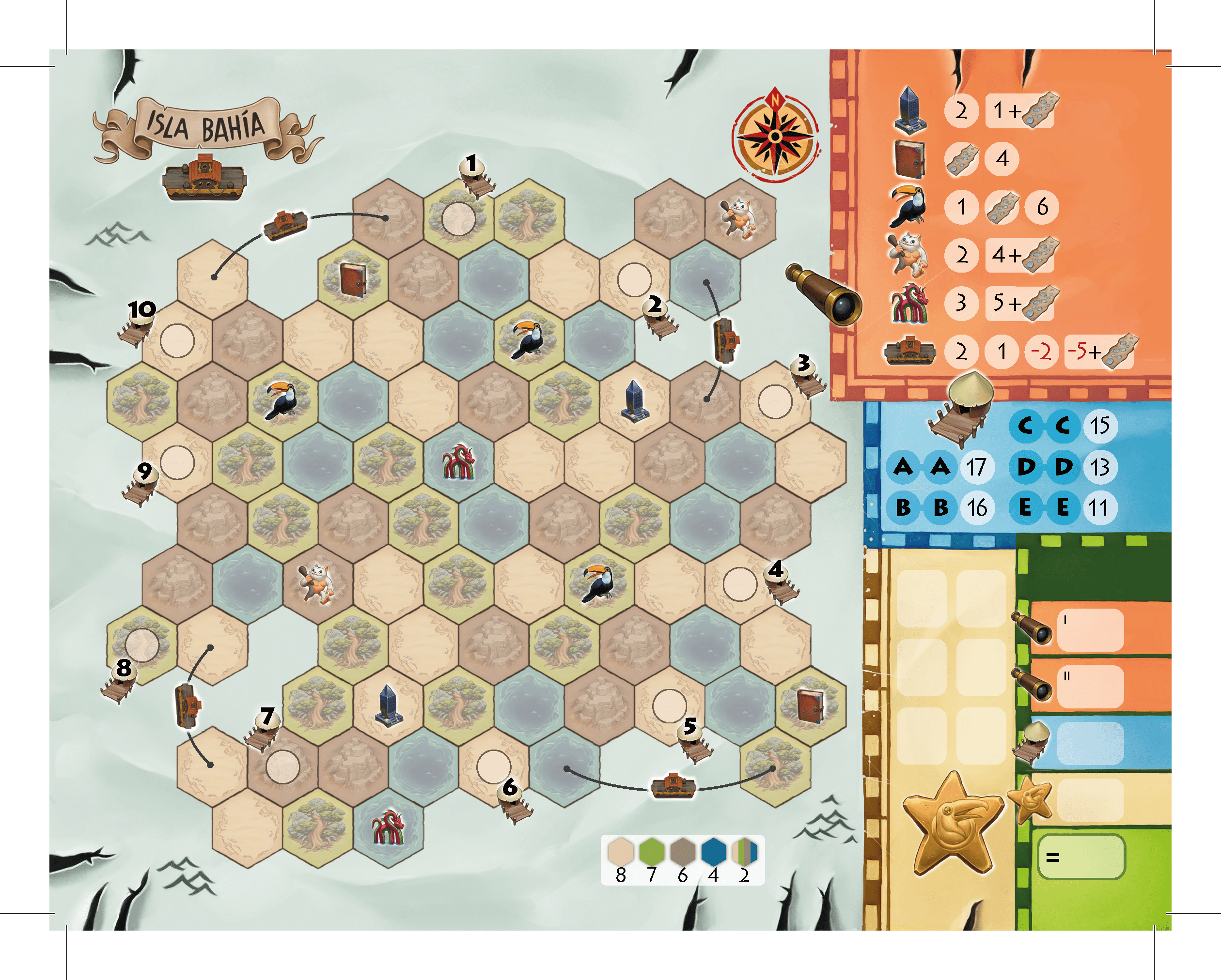 Jede*r erhält eine Inselkarte mit mehreren Dörfern, Sehenswürdigkeiten und unterschiedlichen Terrains. In jedem Zug werden zwei Karten aufgedeckt und alle Spielenden müssen auf ihrer Insel Strecken zwischen den beiden auf den Karten gezeigten Terrains zeichnen. Passende Dörfer miteinander zu verbinden sowie Wege von den Dörfern zu den Sehenswürdigkeiten zu bahnen, bringt Punkte. Wer die meisten Punkte hat, nachdem der Kartenstapel zwei Mal durchgespielt wurde, gewinnt.